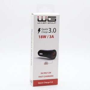 Jednoduchá a rýchla nabíjačka v značke WG do 12/24V zásuvky vášho vozidla s jedným USB-A slotom. Slot tejto 18W nabíjačky je v štandarde rýchlonabíjania QC 3.0, výstupný prúd sú 3 A.