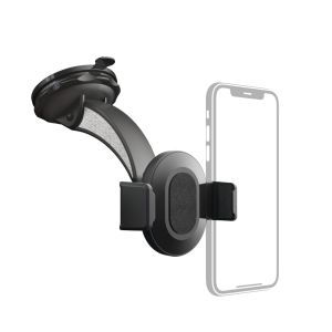 Praktický držiak telefónu, ktorý sa na čelné sklo upevní pomocou kvalitnej prísavky.