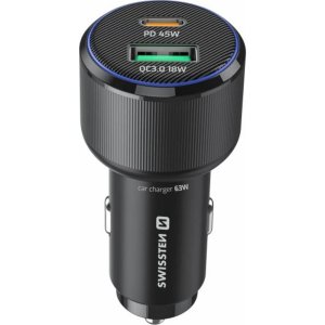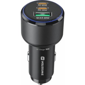 SWISSTEN 20114020; Kvalitne spracovaná nabíjačka do auta s výstupom USB-C, dvoma USB, podporou Power Delivery a výkonom 30 W.