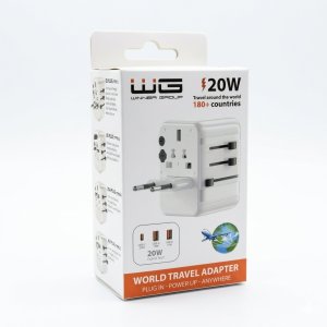 Sieťový adaptér • zásuvka • rozbočovač • 4 × AC výstup (220V-250V/16A) • 3 × USB-A výstup 12W (5V/2.4A celkom) • 1× USB-C výstup 20W (5V/3A, 9V/2.22A, 12V/1.67A) • digitálny displej
