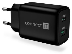 CONNECT IT Wanderer2 GaN nabíjací adaptér 1×USB-C + 1xUSB-A, 33W PD, ČIERNY