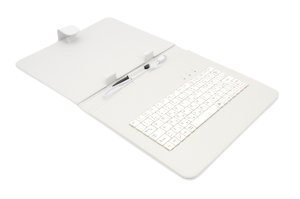 Koženkové univerzálne púzdro pre tablety 9,7" so vstavanou USB klávesnicou a konektorom microUSB. - ľahké, tenké, pevné a flexibilné púzdro - vonkajšia časť vyrobená z koženky, vnútorná časť z textilného …