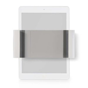 Držiak na tablet so šírkou 14,5 až do 21 cm, otočný o 360 ° pre sledovanie videí na výšku aj na šírku, slot vo svorke pre pohodlné nabíjanie, materiál oceľ a plast, farba šedá a biela.