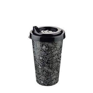 Kvalitný plastový pohárik 400ml s viečkom určený na kávu.