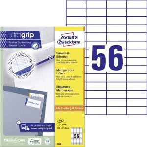 Univerzálne samolepiace štítky Vhodné pre laserové tlačiarne, atramentové tlačiarne a kopírovacie stroje Veľkosť štítku: 63,5 x 38,1 mm Belosť CIE: 150 Na zadnej strane obalu zobrazenie rozvrhnutia štítkov na …