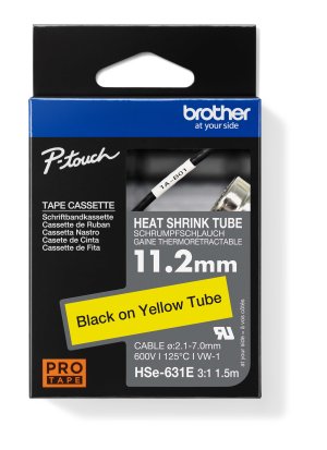HSE-631E - NOVÁ, ŽLTÁ originálna bužírka, zmrštiteľnosť 3:1, šírka 11,2 mm, čierna tlač na žlté, dĺžka 1,5 mz radu PRO Tape (dizajn čierno-modrého balenia) *Nutné si stiahnuť a aktualizovať firmware …