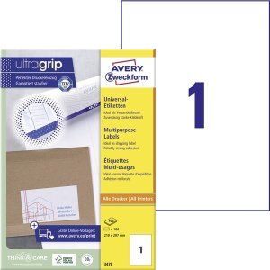 Univerzálne samolepiace štítky Vhodné pre laserové tlačiarne, atramentové tlačiarne a kopírovacie stroje Veľkosť štítku: 199,6 x 289 mm Belosť CIE: 150 Na zadnej strane obalu zobrazenie rozvrhnutia štítkov na …