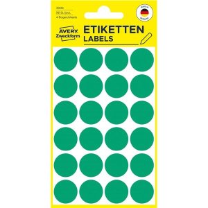 Okrúhle značkovacie etikety zelenej farby Etikety sú dostupné v troch veľkostiach a rôznych farbách Vhodné pre ručný popis Farba: zelené Rozmery etikiet, štítku: 18 mm Počet etikiet, štítkov na archu: 24 …