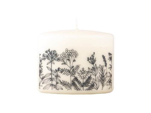 Sviečka v tvare elipsy vo farbe slonovej kosti s kvetinovým motívom. Elegantná kombinácia farby a kvetinového motívu je ideálna pre každú príležitosť, ktorá si zaslúži jemný dotyk krásy. Jej rozmery sú 120x55x95 mm.