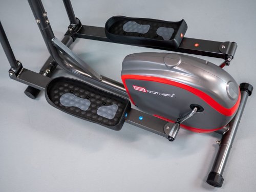 Magnetický eliptický trenažér Acra Brother BE540 je určený pre menej náročných užívateľov s výškou do 187 cm a je vhodný na použitie v posilňovni aj v domácom prostredí. Umožňuje manuálnu voľbu záťaže z 8 stupňov pomocou 6kg zotrvačníka, teda si ľahko prispôsobíte obtiažnosť cvičenia požadovanej úrovni. Zabudovaný počítač meria čas, prejdenú vzdialenosť, vynaloženú rýchlosť, spálené kalórie a tiež tepovú frekvenciu, takže budete mať dostatok údajov na dôslednú analýzu vášho športového výkonu i zdravotného stavu. Rovnako tu nechýba praktická funkcia Scan , ktorá obstará pravidelné zobrazenie všetkých meraných údajov pre vyššiu prehľadnosť počas cvičenia a posilňovania.