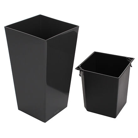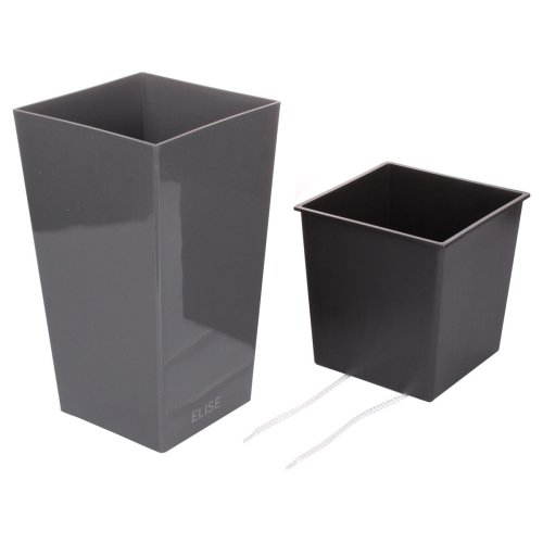 Štýlový dekoratívny kvetináč Elise Lesk s lesklým povrchom je ideálnym doplnkom domov aj na záhradu. Hranatý kvetináč s vyberateľnou nádobou je vyrobený z pevného plastu, ktorý je odolný proti mrazu as UV stabilizátorom, takže ho bez obáv môžete nechať na záhrade cez zimu aj cez slnečné leto. Kvetináč má integrovaný skrutkovateľný prepad na odtok dažďovej vody. Model Elise Lesk 15 má zabudovaný samozavlažovací systém s knôtmi. K modelom Elise Lesk 20/25/30 je možné dokúpiť samozavlažovací systém Smart System Elise. Kvetináč má v každom rohu háčiky na komfortné vytiahnutie vnútornej nádoby. Parametre: Elise Lesk 15 Výška: 26 cm Dĺžka hornej hrany: 14,5 cm Výška priestoru na stávkovanie: 15 cm Elise Lesk 20 Výška: 36,5 cm Dĺžka hornej hrany: 19 cm Výška priestoru na stávkovanie: 20 cm Elise Lesk 25 Výška : 46,5 cm Dĺžka hornej hrany: 24 cm Výška priestoru na stávkovanie: 25 cm Elise Lesk 30 Výška: 57,5 cm Dĺžka hornej hrany: 28,5 cm Výška priestoru na stávkovanie: 30 cm