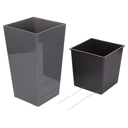 Štýlový dekoratívny kvetináč Elise Lesk s lesklým povrchom je ideálnym doplnkom domov aj na záhradu. Hranatý kvetináč s vyberateľnou nádobou je vyrobený z pevného plastu, ktorý je odolný proti mrazu as UV stabilizátorom, takže ho bez obáv môžete nechať na záhrade cez zimu aj cez slnečné leto. Kvetináč má integrovaný skrutkovateľný prepad na odtok dažďovej vody. Model Elise Lesk 15 má zabudovaný samozavlažovací systém s knôtmi. K modelom Elise Lesk 20/25/30 je možné dokúpiť samozavlažovací systém Smart System Elise. Kvetináč má v každom rohu háčiky na komfortné vytiahnutie vnútornej nádoby. Parametre: Elise Lesk 15 Výška: 26 cm Dĺžka hornej hrany: 14,5 cm Výška priestoru na stávkovanie: 15 cm Elise Lesk 20 Výška: 36,5 cm Dĺžka hornej hrany: 19 cm Výška priestoru na stávkovanie: 20 cm Elise Lesk 25 Výška : 46,5 cm Dĺžka hornej hrany: 24 cm Výška priestoru na stávkovanie: 25 cm Elise Lesk 30 Výška: 57,5 cm Dĺžka hornej hrany: 28,5 cm Výška priestoru na stávkovanie: 30 cm
