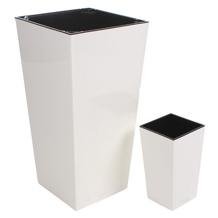 Štýlový dekoratívny kvetináč Elise Lesk s lesklým povrchom je ideálnym doplnkom domov aj na záhradu. Hranatý kvetináč s vyberateľnou nádobou je vyrobený z pevného plastu, ktorý je odolný proti mrazu as UV stabilizátorom, takže ho bez obáv môžete nechať na záhrade cez zimu aj cez slnečné leto. Kvetináč má integrovaný skrutkovateľný prepad na odtok dažďovej vody. Model Elise Lesk 15 má zabudovaný samozavlažovací systém s knôtmi. K modelom Elise Lesk 20/25/30 je možné dokúpiť samozavlažovací systém Smart System Elise. Kvetináč má v každom rohu háčiky na komfortné vytiahnutie vnútornej nádoby. Parametre: Elise Lesk 15 Výška: 26 cm Dĺžka hornej hrany: 14,5 cm Výška priestoru na stávkovanie: 15 cm Elise Lesk 20 Výška: 36,5 cm Dĺžka hornej hrany: 19 cm Výška priestoru na stávkovanie: 20 cm Elise Lesk 25 Výška : 46,5 cm Dĺžka hornej hrany: 24 cm Výška priestoru na stávkovanie: 25 cm Elise Lesk 30 Výška: 57,5 cm Dĺžka hornej hrany: 28,5 cm Výška priestoru na stávkovanie: 30 cm