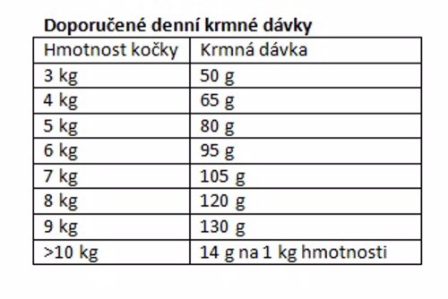 denná dávka | 50 g | 65 g | 80 g | 95 g | 105 g | 120 g | 130 g | 14 g na 1 kg hmotnosti |
