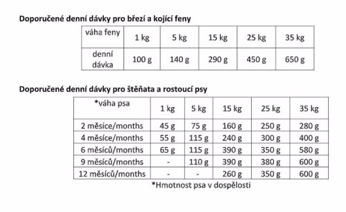 Receptúra plne pokrýva požiadavky mladého organizmu malých a stredných plemien. Vysoký obsah ľahko stráviteľných kuracích bielkovín a optimálny obsah tukov dodávajú šteňatám dostatok energie a spoločne s vyváženým pomerom makro a mikroprvkov, vitamínov a ďalších účinných látok zaisťujú správny rast a vývoj šteňaťa.