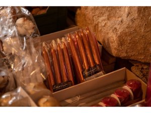 Elegantné zlaté úzke valce skvele doplnia adventný veniec.