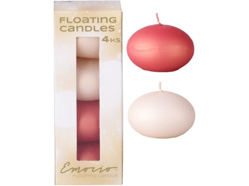 Sada 4 plávajúcich sviečok Emocio v metalickom matnom ružovom prevedení. Farebné odtiene sú dodávané v mixe, sviečky sú balené v praktickej krabičke.