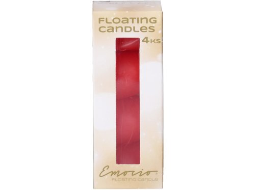 Sada 4 červených plávajúcich sviečok Emocio v krabičke. Vhodné na romantické dekorácie a slávnostné príležitosti. Rozmery každej sviečky sú 40x40 mm.