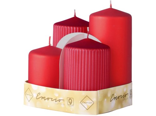 Emocio Sada 4ks Valec hladký + ryhovaný 65mm, Metal mat červená štandard, sviečky