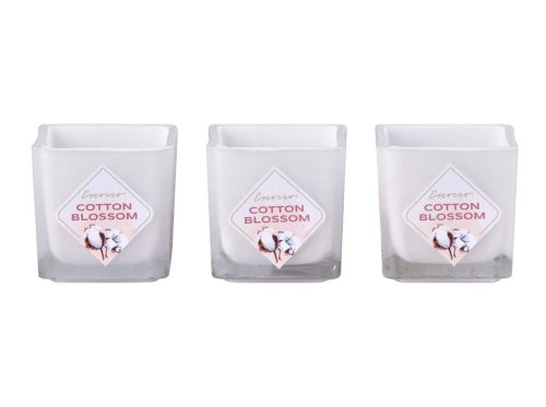 Emocio Sklo farebné 51x51x52 mm 3 ks Cotton Blossom vonná sviečka