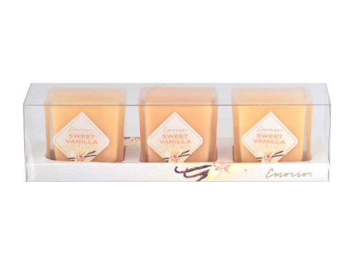 Emocio Sklo farebné 51x51x52 mm 3 ks Sweet Vanilla vonná sviečka