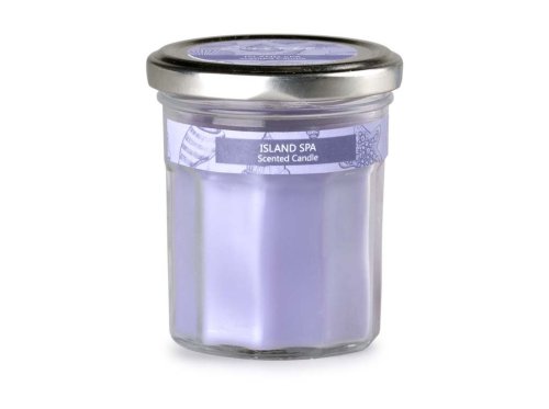 Emocio Sklo fialové 69x85 mm s plechovým viečkom, Island Spa vonná sviečka