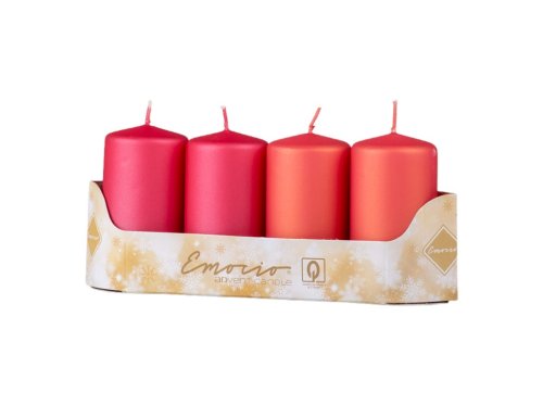 Sada 4 kusov valcových sviečok Emocio o rozmere 40×75 mm v metalickom matnom ružovom prevedení. Farebné odtiene sú dodávané v mixe, jednotlivé sviečky sa môžu mierne líšiť tónom.