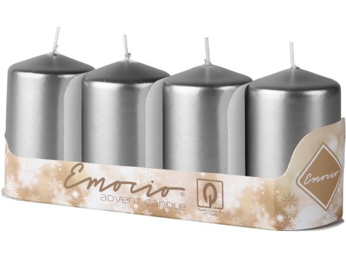 Emocio Valec 4ks 40x80mm Metal strieborné sviečky