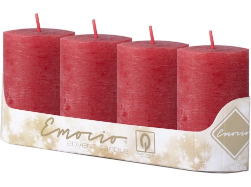 Emocio Valec 4ks 50x100 mm Rustikálne červené sviečky