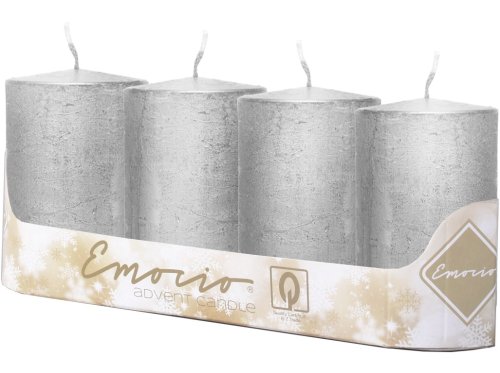 Emocio Valec 4ks 50x100 mm Rustikálne Metal strieborné sviečky