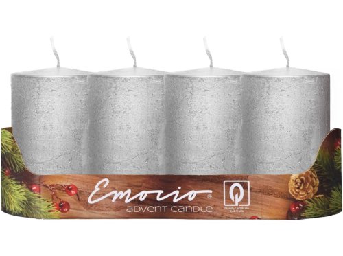 Emocio Valec 4ks 50x100mm Rustik Metal strieborné sviečky