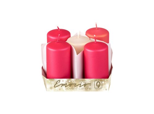Sada 5 kusov valcových sviečok Emocio o rozmere 40×75 mm v metalickom matnom ružovom prevedení. Farebné odtiene sú dodávané v mixe, jednotlivé sviečky sa môžu mierne líšiť tónom.