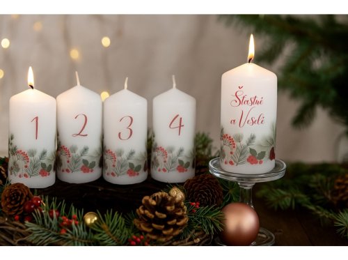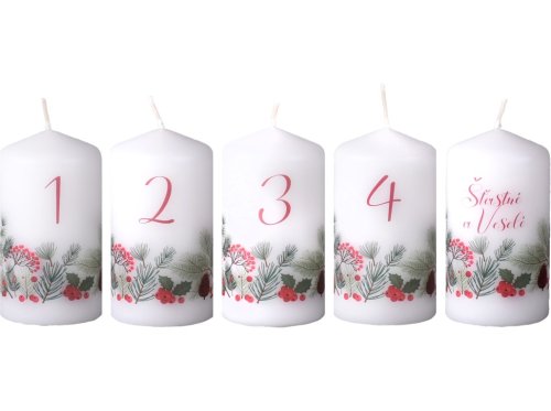 Emocio Valec 5ks 50x90 mm adventné čísla Šťastné a Veselé, sviečky