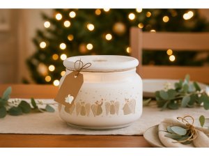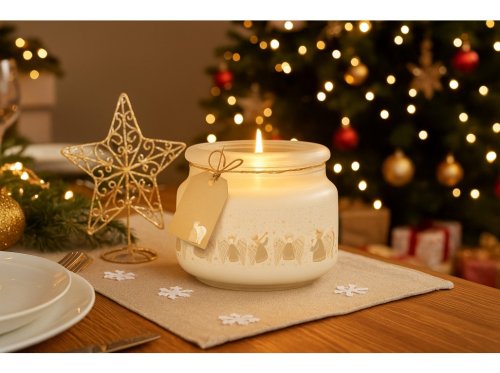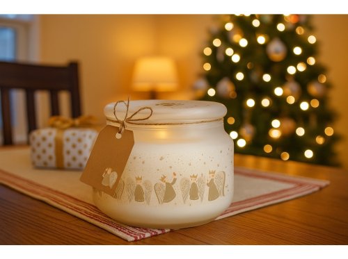 Vytvorte si doma kúzelnú, anjelsky jemnú atmosféru vďaka vonnej sviečke Emocio Golden Angels. Táto elegantná sviečka je zasadená do kvalitného skla s rozmermi 100 × 79 mm a doplnená skleneným viečkom, ktoré chráni vôňu a zároveň pôsobí ako krásny dekoratívny prvok.