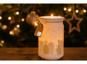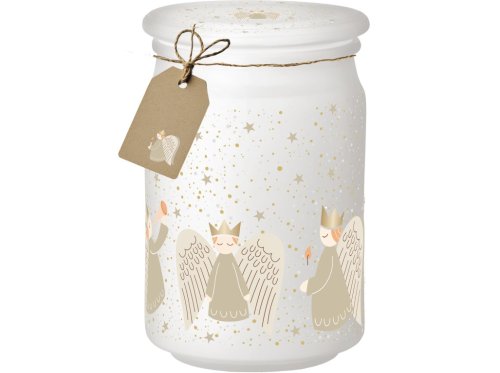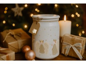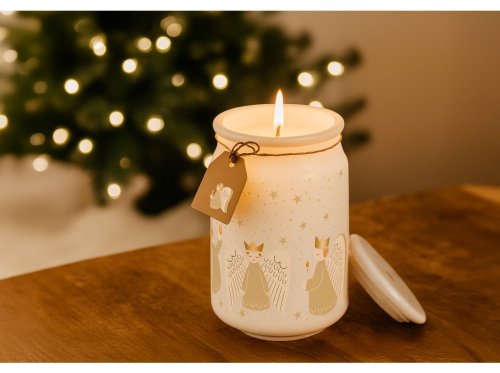 Vytvorte si doma kúzelnú, anjelsky jemnú atmosféru vďaka vonnej sviečke Emocio Golden Angels. Táto elegantná sviečka je zasadená do kvalitného skla s rozmermi 93 × 142 mm a doplnená skleneným viečkom, ktoré chráni vôňu a zároveň pôsobí ako krásny dekoratívny prvok.