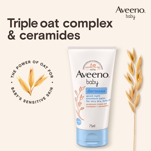 Emolienčný balzam na dobrú noc bol vyvinutý špeciálne pre potreby citlivej a atopickej detskej pokožky. Vďaka trojitému ovsenému komplexu a ceramidom poskytuje intenzívnu hydratáciu, upokojenie svrbenia a podporu kožnej bariéry po celú noc. Klinické testy preukázali, že zmierňuje diskomfort už od prvej aplikácie a viditeľne obnovuje kožnú bariéru do jedného týždňa. Jeho zloženie s prebiotickým ovseným výťažkom prispieva k rovnováhe kožného mikrobiomu a chráni pokožku pred ďalším podráždením. Vďaka viac ako 40 rokom výskumu ovsa prináša Aveeno® účinnú a šetrnú starostlivosť pre pokojnejší spánok vašich najmenších.