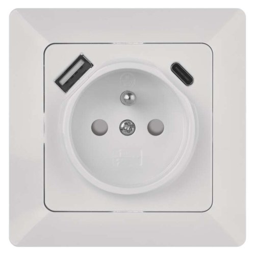 EMOS zásuvka s USB A + USB C, zásuvka EMOS je zhotovená v štýle FRENCH design, určená na montáž do inštalačnej krabice, stupeň krytia je IP20