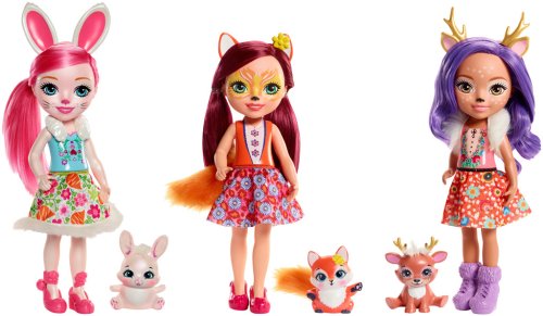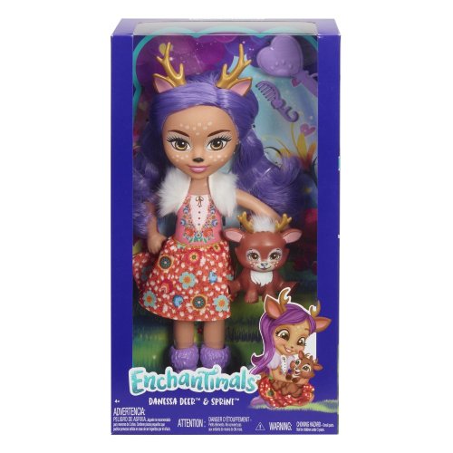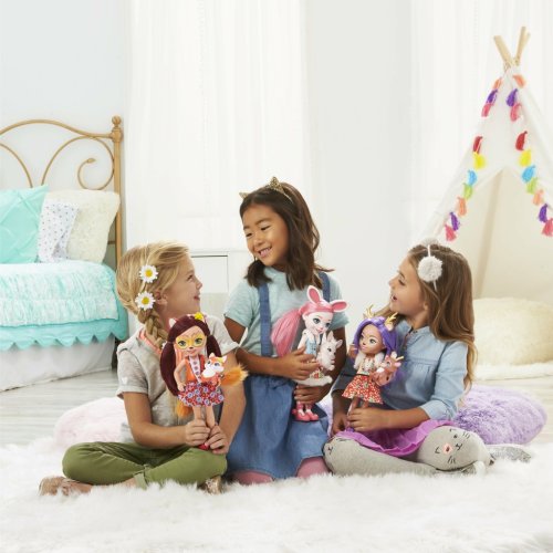 Prehrávajte si kúzelné príbehy s bábikami Enchantimals™ a ich miláčikmi. Enchantimals™ sú roztomilé bytôstky, ktoré so svojimi miláčikmi zdieľajú zvláštne puto – sú stále spolu a vyzerajú rovnako! Na výber sú: bábika Felicity Liškova a Flick, bábika Danessa Jelínková a Sprint alebo bábika Bree Zajíčková a Twist. Bábiky sú 30 cm vysoké! Každá bábika má pestrý oblečok a topánky, az ich vlasov vykukujú uši, ktoré podčiarkujú ich vzhľad. Ich maznáčikovia majú svoje vlastné doplnky – napríklad zlaté parohy a chlpaté chvostíky. Každé duo kamarátov Enchantimals™ sa dodáva so zodpovedajúcou sadou dvoch kief na vlasy pre zábavný styling. Predávajú sa samostatne podľa aktuálnej ponuky.