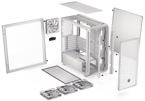 Skriňa formátu Middle Tower s priehľadnou bočnicou ponúka šesť 2,5 "pozícií pre SSD disky a jednu 3,5" pozíciu pre pevný disk. Na hornom paneli nájdete dva porty USB 3.0, jeden port USB-C a ďalej aj konektor pre slúchadlá a konektor pre mikrofón. Skriňa je osadená štyrmi ventilátormi o veľkosti 140 mm s ARGB podsvietením. Dômyselné riešenie umožňuje pohodlné umiestnenie až 360 mm dlhého výmenníka vodného chladenia na prednej a hornej strane. V skrini je dostatok priestoru pre chladič CPU do výšky až 179 mm a grafickú kartu s dĺžkou 410 mm. Skriňa je dodávaná bez zdroja. Súčasťou je aj sada prachových filtrov.