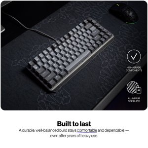 Klávesnica Endorfy Thock V2 75% CZ , ktorá vám v kompaktnom prevedení sprostredkuje špičkové herné ovládanie. Disponuje 82 klávesmi v 75% rozložení , vďaka čomu vám uvoľní miesto na stole , ale nijako neoreže vaše možnosti na víťazstvo. Tento dizajn ponúka optimálny pomer medzi kompaktnosťou a funkčnosťou. Telo klávesnice Endorfy Thock V2 75% CZ je zhotovené z kvalitných materiálov, vyznačuje sa prítomnosťou hornej hliníkovej dosky , ktorá zvyšuje pevnosť a celkové vystuženie.