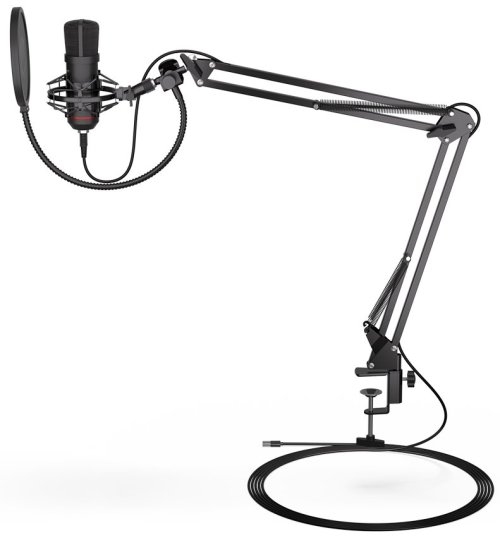Kvalitný mikrofón s kardioidnou charakteristikou a nastaviteľným ramenom s dosahom 90 cm je ideálny na streamovanie, natáčanie vlogov, podcastov či hlasovú komunikáciu. Zaiste poteší 3,5 mm jack pre pripojenie slúchadiel . Mikrofón ponúka jednoduchú a pevnú montáž pomocou skrutky k stolnej doske. Súčasťou balenia je pop-up filter a 2,9 m dlhý pripojovací kábel USB-C na USB-A .