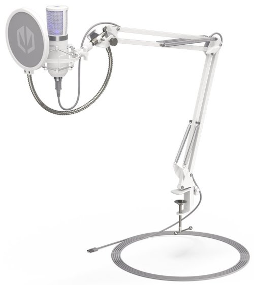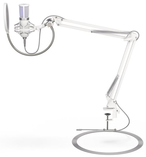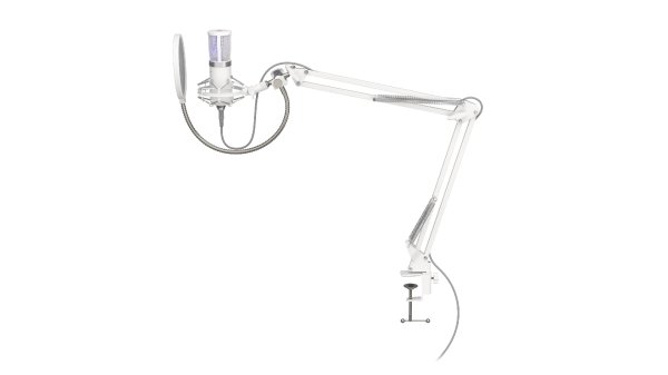 Dlhé polohovateľné rameno šetrí miesto na vašom stole a umožní vám mikrofón rýchlo a jednoducho nastaviť do požadovanej polohy. Konštrukcia umožňuje uchytenie na stranu dosky stola, čím šetrí priestor pre ďalšie dôležité veci. Vďaka systému Plug & Play je behom okamihu pripravený a vy môžete začať hovoriť a využívať mikrofón naplno. Elegantný dizajn Onyx White navyše dá vášmu domácemu štúdiu punc exkluzivity.