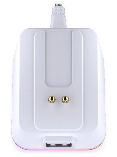 Magnetická bezdrôtová nabíjacia stanica RGB podsvietenie (11 režimov) USB-A port pre 2,4 GHz dongle Magnetické uchytenie myši Rozhranie: USB-C (napájanie), USB‑A Dĺžka kábla: 180 cm