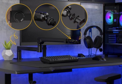 Nastaviteľné rameno s 3 kĺbmi pre ideálnu polohu mikrofónu pri streamovaní ponúka jednoduchú a pevnú montáž pomocou skrutky k stolnej doske s hrúbkou 15 až 105 mm. Stojan je vhodný pre všetky bežne používané mikrofóny do hmotnosti až 2 kg . Vďaka guľovej hlave s 360 ° rotáciou a nastaviteľným predlžovacím segmentom (82 mm a 157 mm) môžete mikrofón umiestniť presne podľa svojich potrieb. Prednosťou je tiež systém pre skryté vedenie káblov či podpora 5/8", 3/8" aj 1/4" závitov.