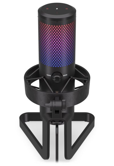 Kvalitný mikrofón s kardioidnou charakteristikou a stojanom je ideálny pre streamovanie, natáčanie vlogov, podcastov či hlasovú komunikáciu. Vybavený je RGB podsvietením, dotykovým tlačidlom pre stlmenie mikrofónu a 3,5 mm jackom pre pripojenie slúchadiel . Súčasťou balenia je 2,5 m dlhý pripojovací USB-C kábel .