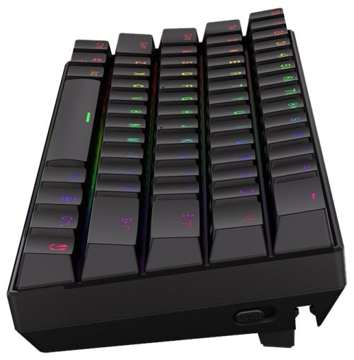 Parametre *Typ produktu: Klávesnica *Typ klávesnice: Mechanická *Farba: Čierna *Rozloženie: US ANSI *Rozmery [mm]: 290×101×47 *Hot-swap: Áno *Farba spínačov: Červená *Typ spínačov: Kailh Box Red *Počet klávesov