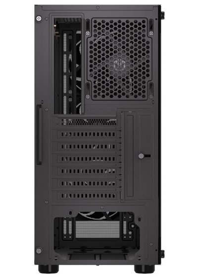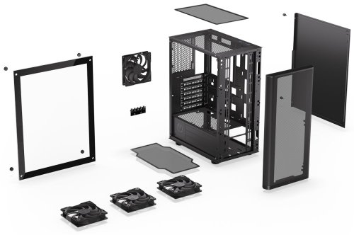 Skriňa formátu Middle Tower s priehľadnou bočnicou z tvrdeného skla ponúka dve 2,5 " pozície pre SSD disky a jednu 3,5" pozíciu pre pevný disk. Na hornej časti sa nachádzajú dva USB 3.0 porty , slúchadlový výstup a audio vstup pre mikrofón. Vybavená je štyrmi 120 mm ventilátormi , ktoré spolu s perforovaným čelným panelom zaisťujú dostatočné prúdenie vzduchu. Dômyselné riešenie umožňuje pohodlné umiestnenie až 360 mm dlhého výmenníka vodného chladenia na prednej strane. V skrini je dostatok priestoru pre chladič CPU do výšky až 161 mm a grafickú kartu s dĺžkou až 315 mm. Dodávaná je bez zdroja . Súčasťou je aj sada prachových filtrov .