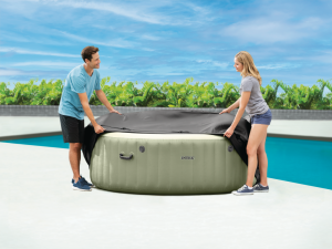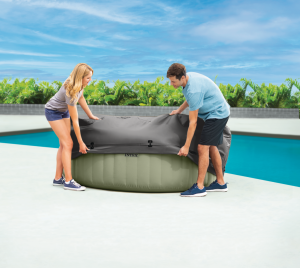 Energeticky úsporný termokryt je ideálny na ochranu vody pred nečistotami a zároveň udržuje teplotu vody až o 50% dlhšie vďaka vysokej hustote tepelne odolnej peny. Kryt chráni vírivku aj pred vonkajšími vplyvmi ako je poškodenie prepichnutím či poškriabaním alebo nepriaznivé počasie. Inštalácia krytu je jednoduchá – jednoducho ho nasaďte na vírivku, zapnite bezpečnostné pracky a uzamknite kľúčikom. Je kompatibilný s okrúhlymi vírivkami pre 4 osoby (196 × 71 cm).