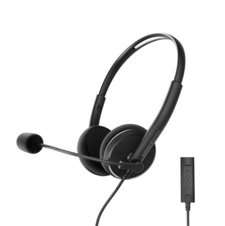 Dynamická, frekvenčná odozva: 20 Hz - 20 kHz, Priemer 30 mm, neodymový magnet, impedancia: 32 ohmov, flexibilný a nastaviteľný mikrofón, citlivosť: -38 dB ± 3 dB, frekvenčná odozva: 100 Hz - 8 kHz, Kábel 1 3,5 mm mini jack, kábel k PC/Notebook - 50 cm a USB typu A, ovládanie hlasitosti a stlmovania, kompatibilný so systémom Windows XP / Vista / 7 / 8 / 8.1 / 10, kompatibilný s Mac OS 10.4 alebo vyšším, nastaviteľný náhlavník, penové chrániče sluchu s vysokou hustotou, rozmer 17 x 16 x 5,5 cm, hmotnosť 75 g