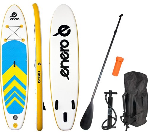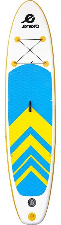 Paddleboarding alebo pádlovanie na doske je vcelku mladý, ale zato obľúbený šport. Pretože sa pri pádlovaní stojí, používa sa skratka SUP čiže Stand Up Paddle = pádlovanie v stoji. Tento druh športu vám umožní precvičiť stabilitu a rovnováhu a zapojí do práce všetky svaly. Pádlovať môžete v pokojných vodách jazier, kanálov, ale aj na mori. Doska má dokonalé zakrivenie, ktoré podporuje jej pevnosť a stabilitu a umožňuje tak hladký a plynulý pohyb po vode. Ľahko sa nafukuje a vyfukuje. Vhodná pre začiatočníkov aj pokročilých. Je výbornou voľbou pre individuálne aj rodinné výlety. Súčasťou paddleboadra sú dve pevne pripojené plutvy a jedna väčšia, ktorú treba nasunúť. Použitie: pre 1 osobu Hmotnosť užívateľa: max 130 kg Hmotnosť výrobku: 12,3 kg Paddleboard je kompatibilný s poistnými lankami od ENERO (predáva sa samostatne). Komplet obsahuje: